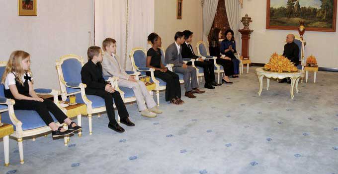 Angelina Jolie lleva a sus seis hijos a conocer al rey de Camboya.